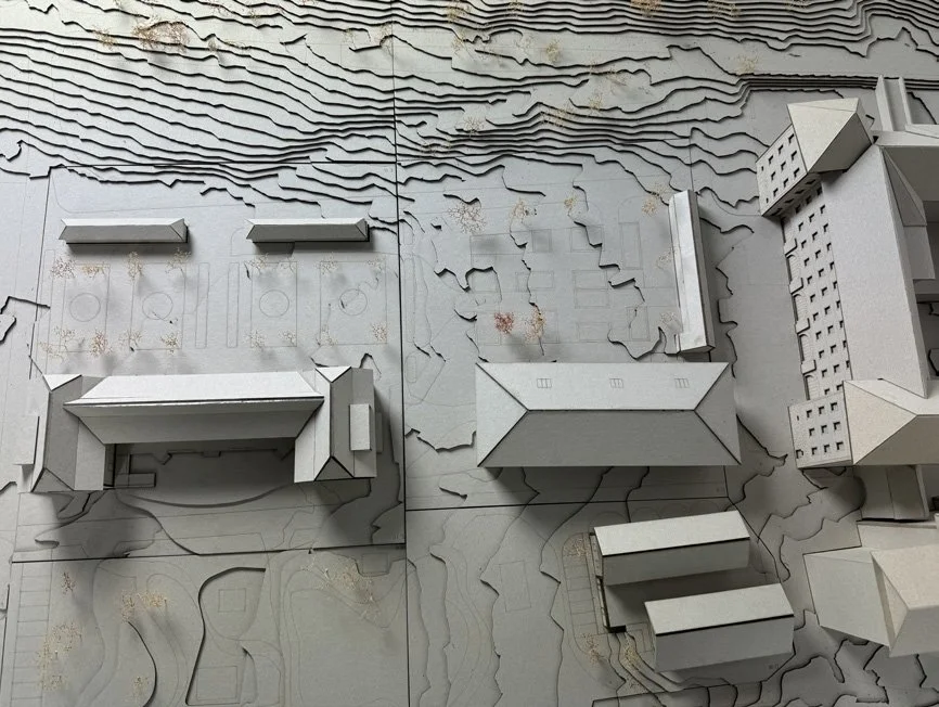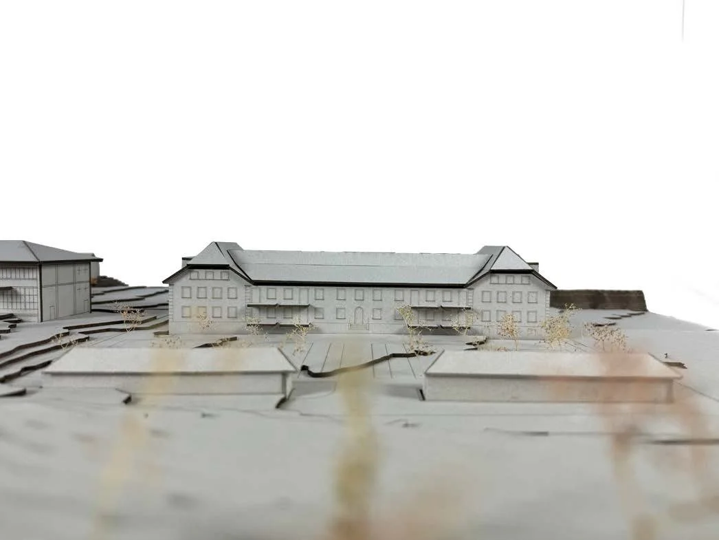 Für das Projekt in Bellelay wurde in der Klasse ein Situationsmodell im Massstab 1:200 gefertigt, das den gesamten Perimeter der Klosteranlage umfasst. Dieses diente als Grundlage für die individuelle Entwurfsarbeit. Mein Einsatzmodell zeigt die Transformation eines Bestandsgebäudes zu neuem Wohnraum im Dialog mit der historischen Substanz. Durch die Integration ins gemeinsame Modell konnte das Projekt im räumlichen Zusammenhang überprüft werden.